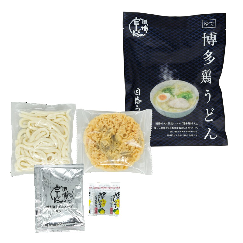 - 因幡うどんの限定メニュー「博多鶏うどん」。