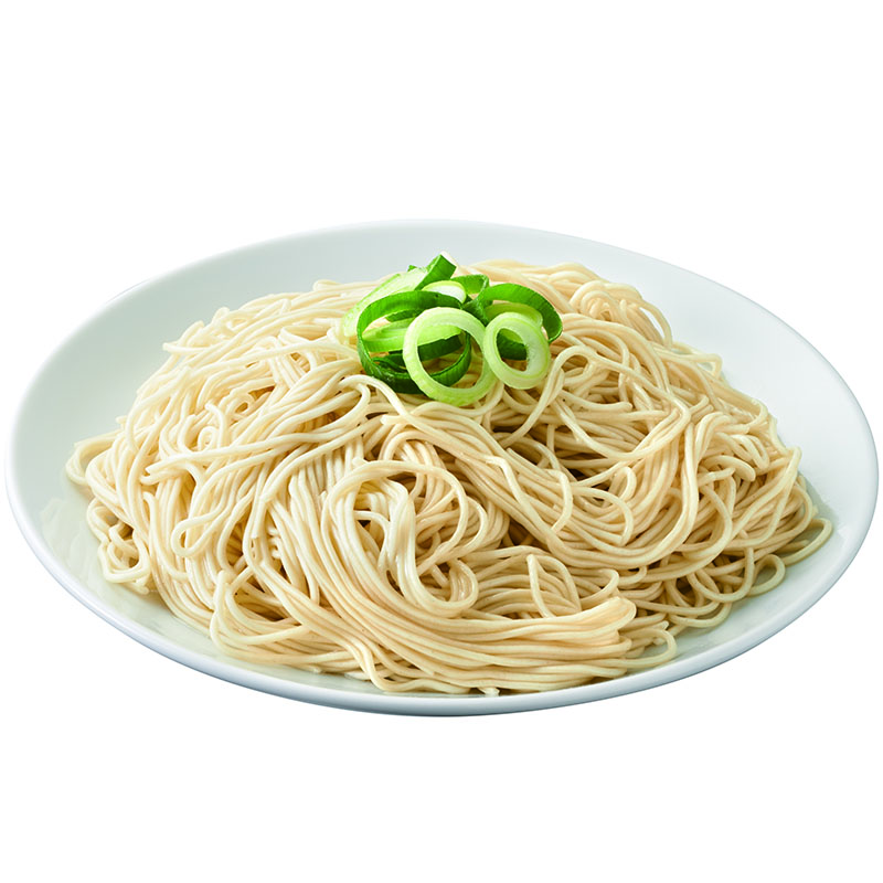 - 博多・絹ごしとんこつラーメンによく絡むコシと風味の極細麺です。