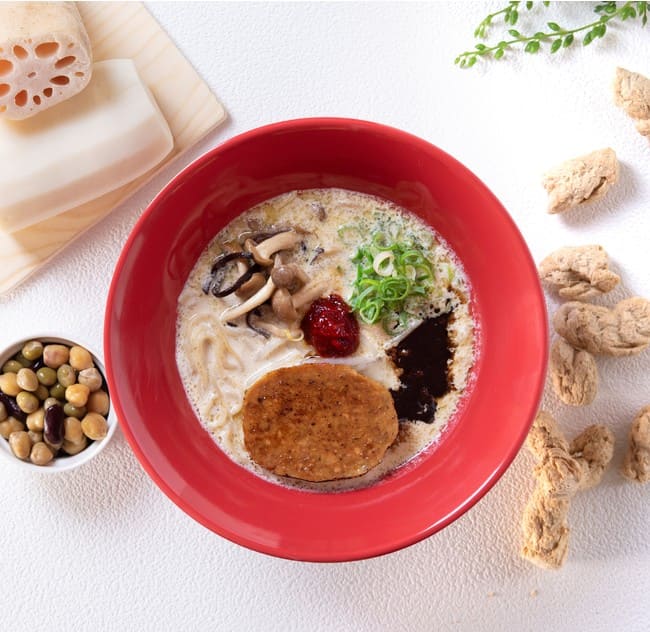 - 動物性食材不使用の優しく、新しい味わいのラーメンです。