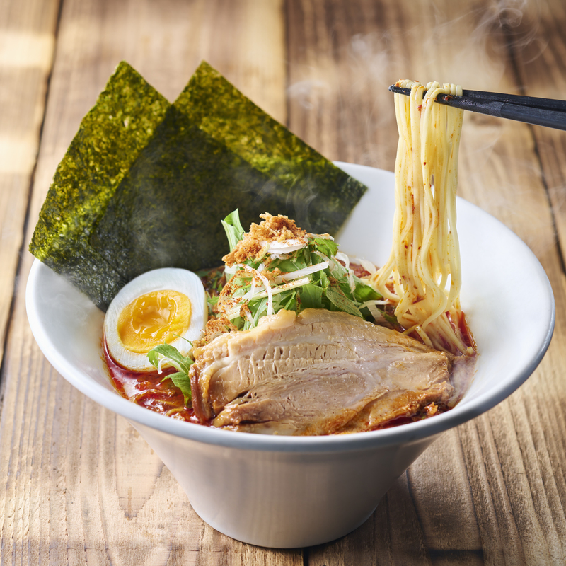 なめらかなとんこつスープに特製のスパイスを合わせ、辛みとコクを加えた、 じわりと汗をかく辛さがたまらない刺激的なとんこつラーメンです。