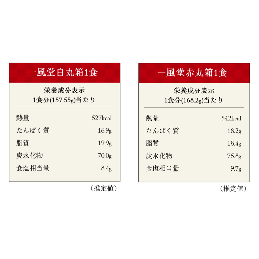 まずはこれ!一風堂を代表する白丸・赤丸を揃えた一風堂を代表するラーメンの2食セットです。