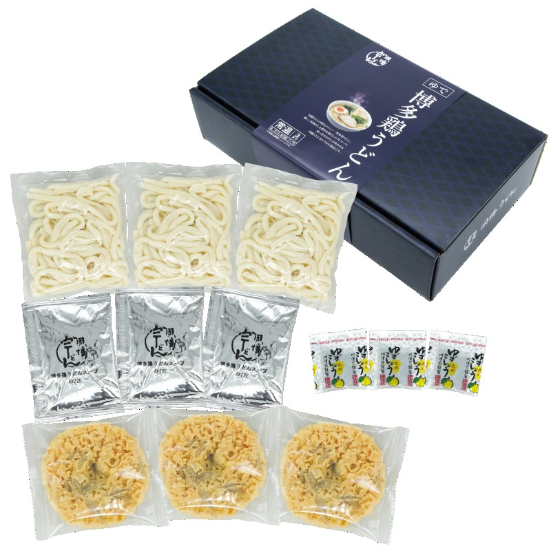 - 因幡うどんの限定メニュー「博多鶏うどん」。
