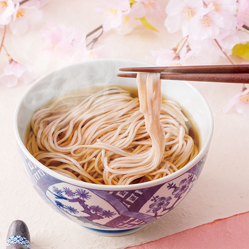 桜葉を練り込んだほのかなピンク色に彩られた桜そばは、見た目もとっても美しく、お花見やお祝い事にもオススメ♪