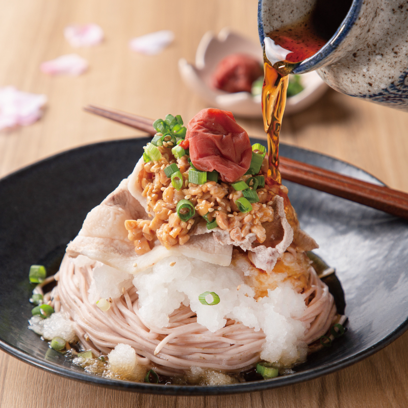豚肉と梅のおろし納豆そば