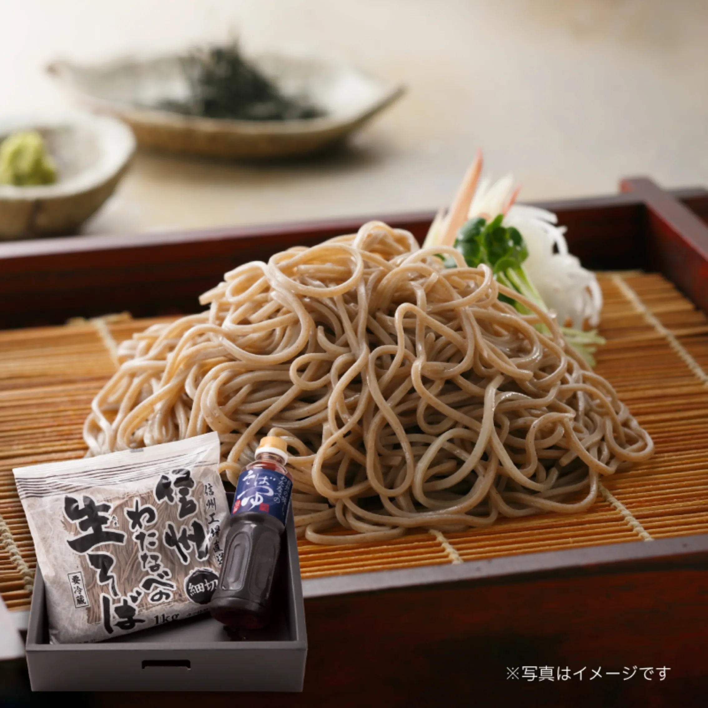 - 細切生そばと自家製そばつゆのセットです。