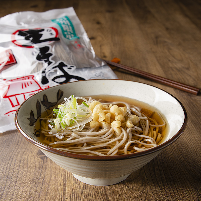 そば:小麦粉(国内製造)、そば粉、食塩、小麦たん白/加工でん粉(打粉)、増粘多糖類、pH調整剤