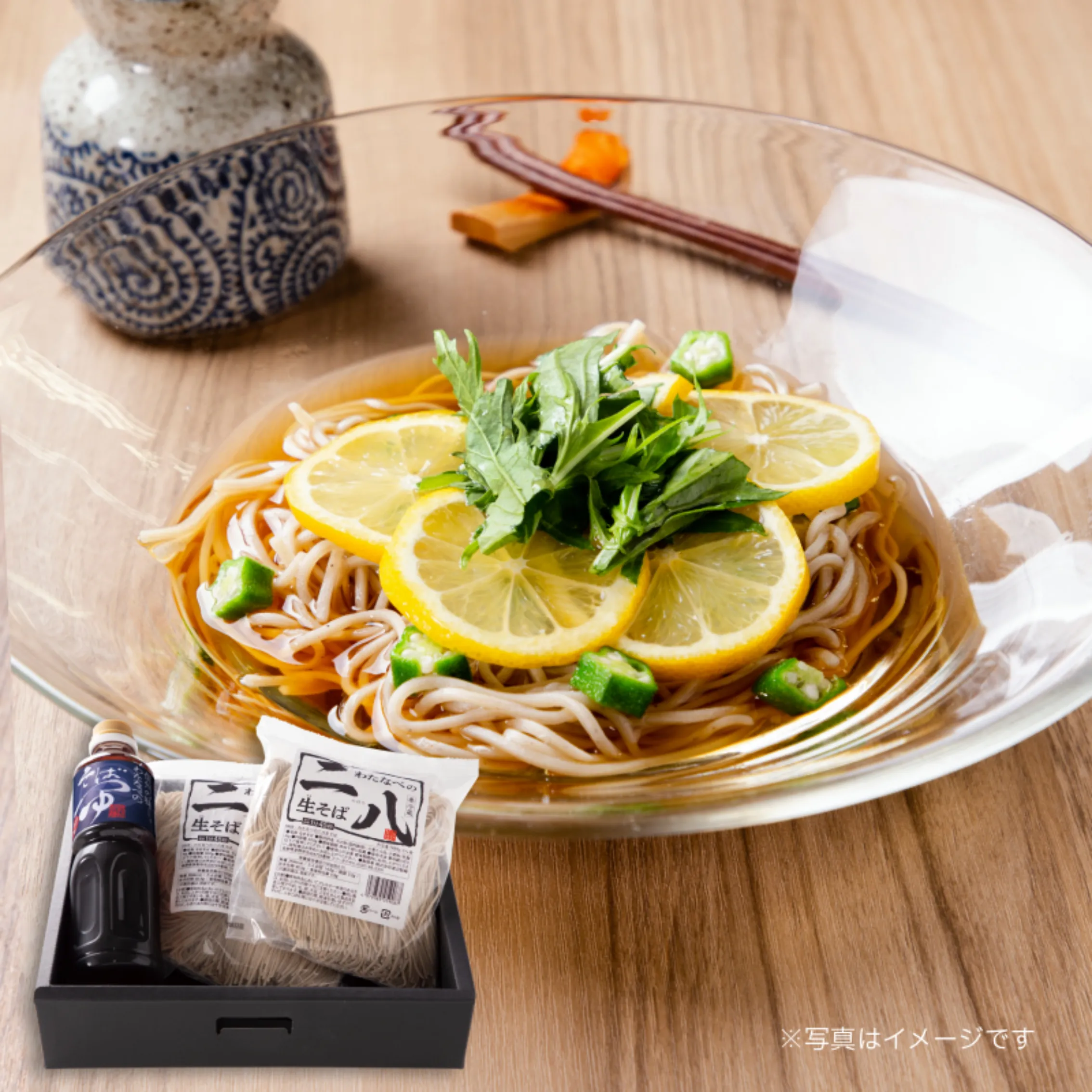- 風味と喉ごしにこだわり抜いた二八生そばとそばつゆのセット。